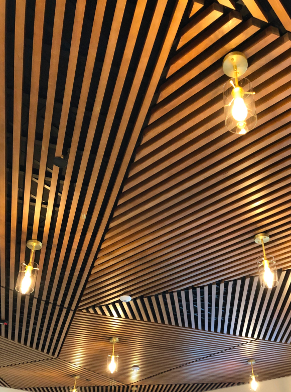 Choose from hundreds of thousands of custom wood ceilings configurations, manufactured on spec and at speed. We call this custom made fast.
